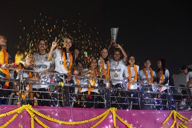 সাফ নারী ফুটবলে ইতিহাস গড়ে গতকাল বৃহস্পতিবার সন্ধ্যায় দেশে ফিরেছেন বাংলাদেশের মেয়েরা। সাবিনা খাতুন, কৃষ্ণা রানী সরকার ও মাসুরা পারভীনরা দক্ষিণ এশিয়ার নতুন এই টুর্নামেন্টে অপরাজিত চ্যাম্পিয়ন হয়েছে। ট্রফি নিয়ে দেশে ফেরার পর বৃহস্পতিবার সন্ধ্যায় খেলোয়াড়দের সংবর্ধনা দিয়েছে বাফুফে।
