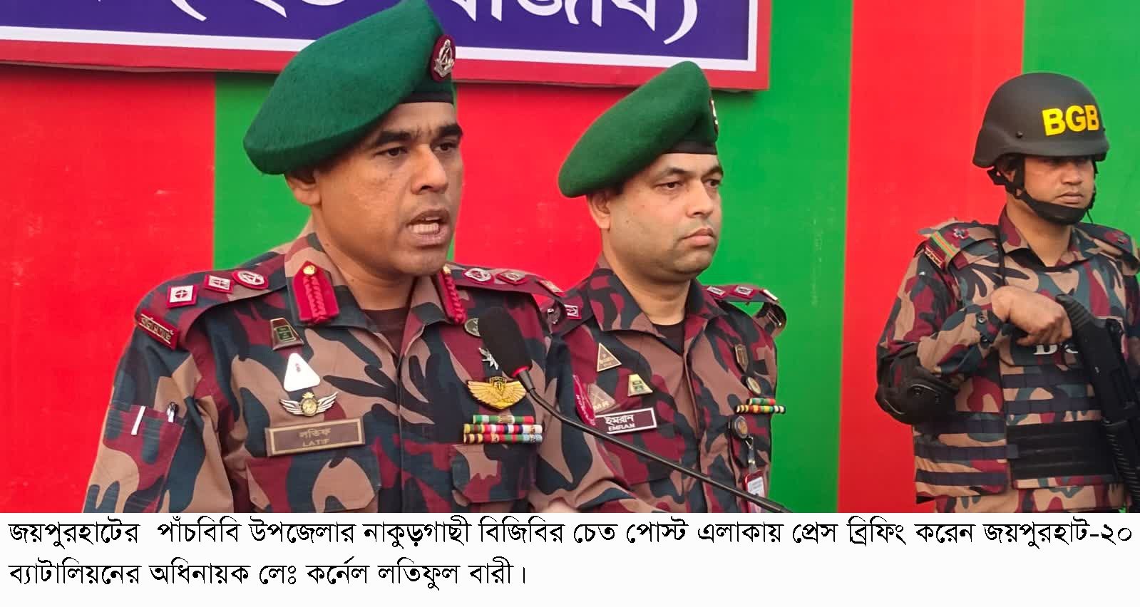 জয়পুরহাট সংবাদদাতা: আসন্ন ত্রয়োদশ জাতীয় সংসদ নির্বাচনকে সামনে রেখে বর্ডার গার্ড বাংলাদেশ (বিজিবি) সীমান্ত এলাকায় টহল জোরদার করেছে। ২৭ জানুয়ারী