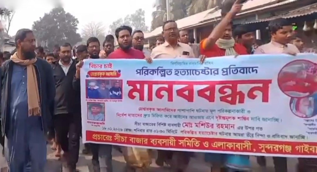 সুন্দরগঞ্জে ব্যবসায়ী হত্যা চেষ্টার প্রধান অভিযুক্তকে গ্রেফতারের দাবিতে মানববন্ধন